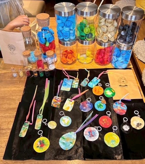 ・ペットボトルキャップからできたシートでしおり作り