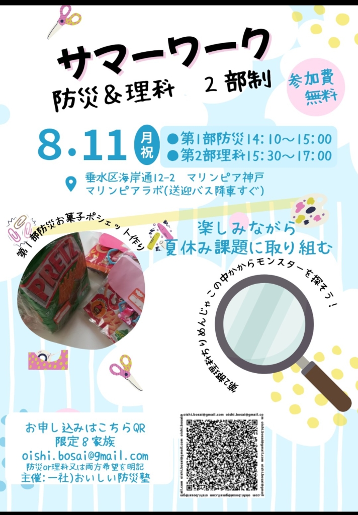 2025年8月11日(月祝)おいしい防災塾『サマーワーク”防災&理科”』