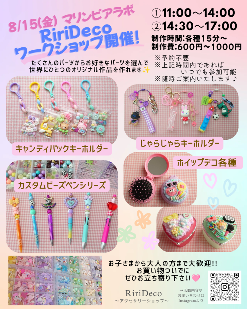 2025年8月15日(金)お子様から大人までデコって楽しめるワークショップ盛りだくさん!