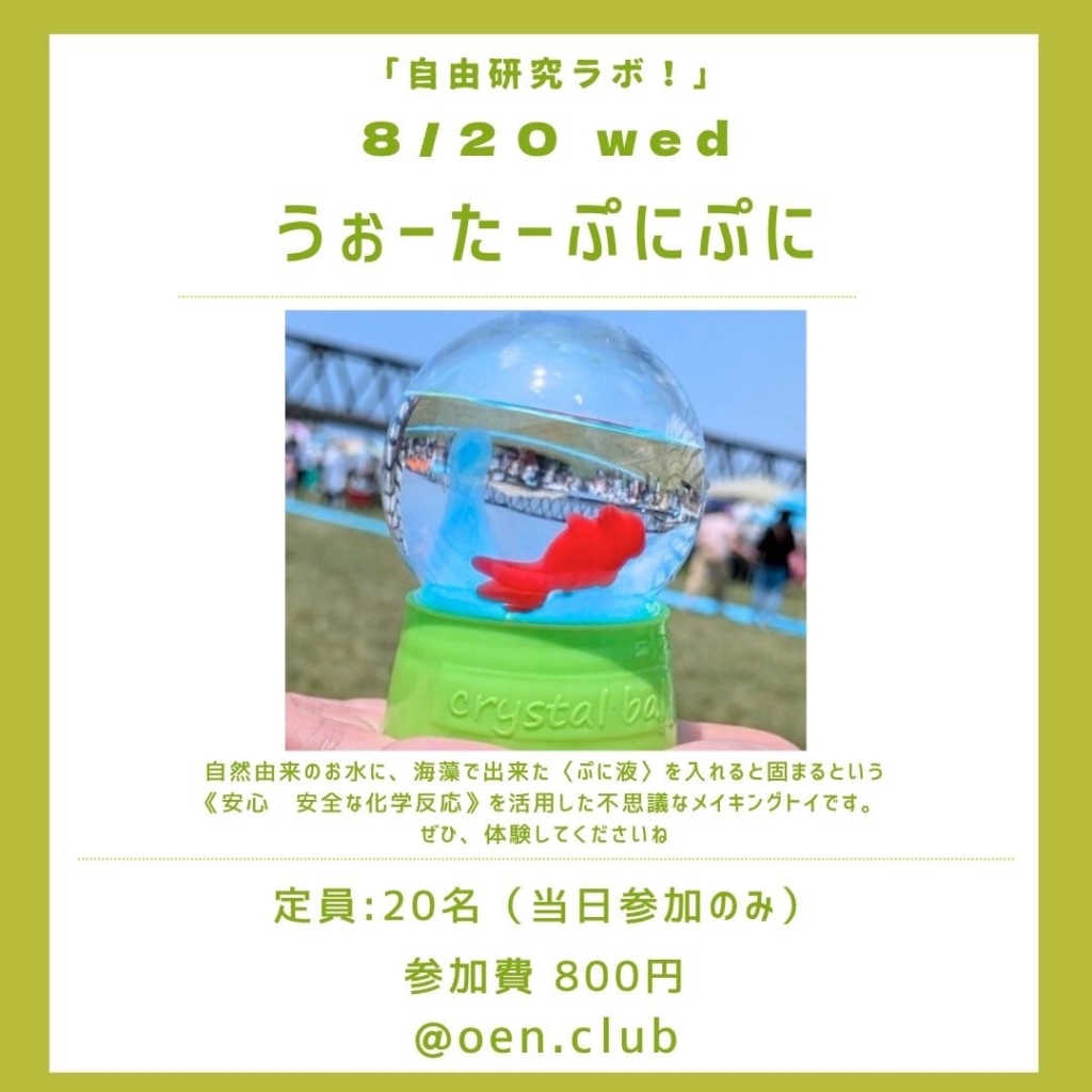 自然由来のお水に、海藻で出来た〈ぷに液〉を入れると固まるという《安心·安全な化学反応》を活用した不思議なメイキングトイです。ぜひ、体験してくださいね♡