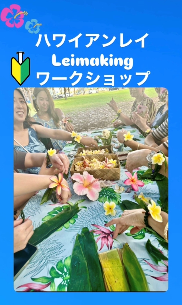 2025年9月19日(金)はじめての方も楽しめる♪ハワイアンカルチャー『生葉ティーリーフで編むレイ作り体験』『ハワイアンレイ(エチケット、マナー)』『レイとフラ(メレとの関係)』