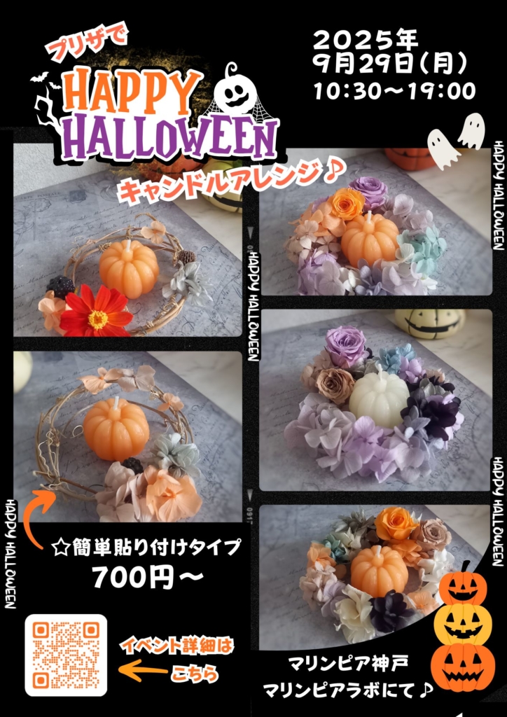 2025年9月29日(月)プリザーブドフラワーのハロウィンキャンドルアレンジ