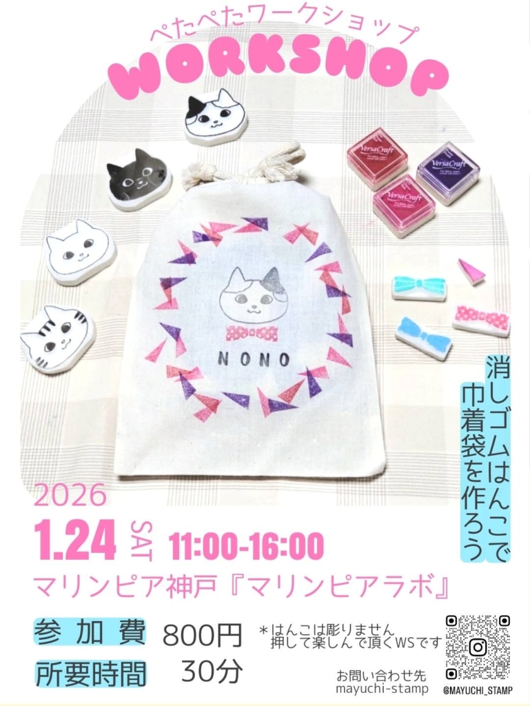 2026年1月24日(土)おひるねアート撮影会・はんこで巾着作り