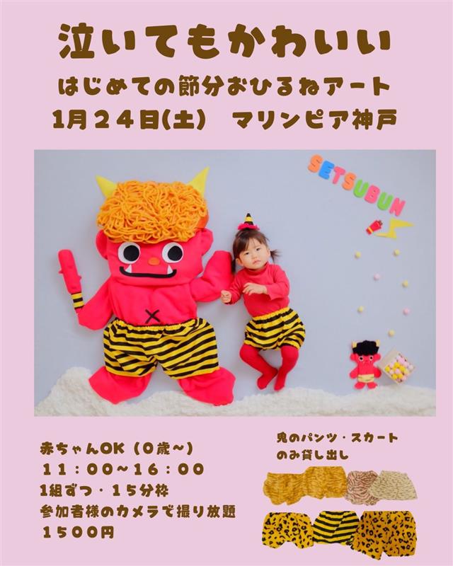 ①泣いてもかわいいはじめての節分おひるねアート