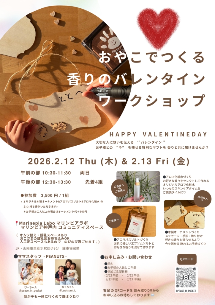 2026年2月12日(木)13(金)おやこでつくる 香りのバレンタインワークショップ