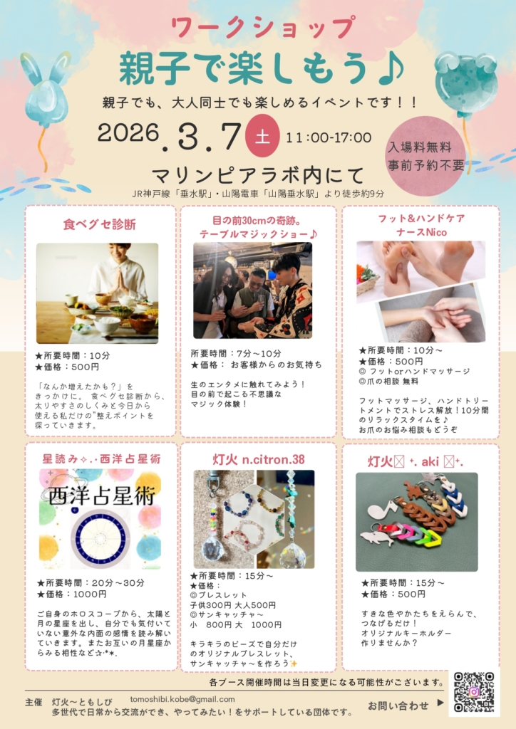 2026年3月7日(土)ワークショップ『親子で楽しもう♪』