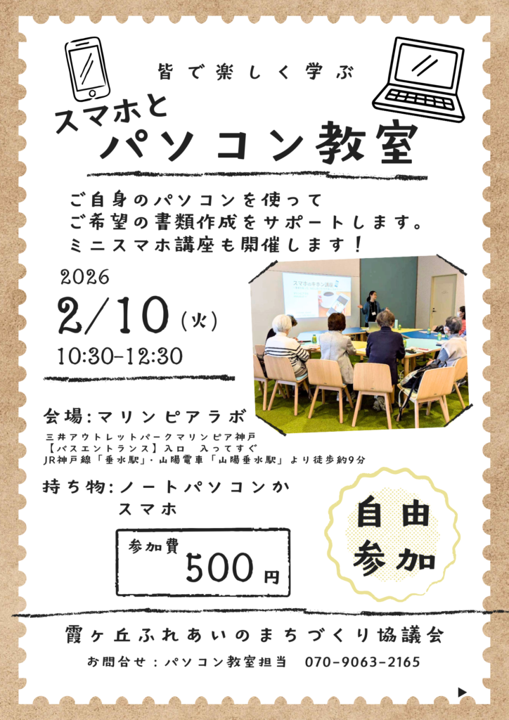 2026年2月10日(火)皆で楽しく学ぶ『スマホとパソコン教室』