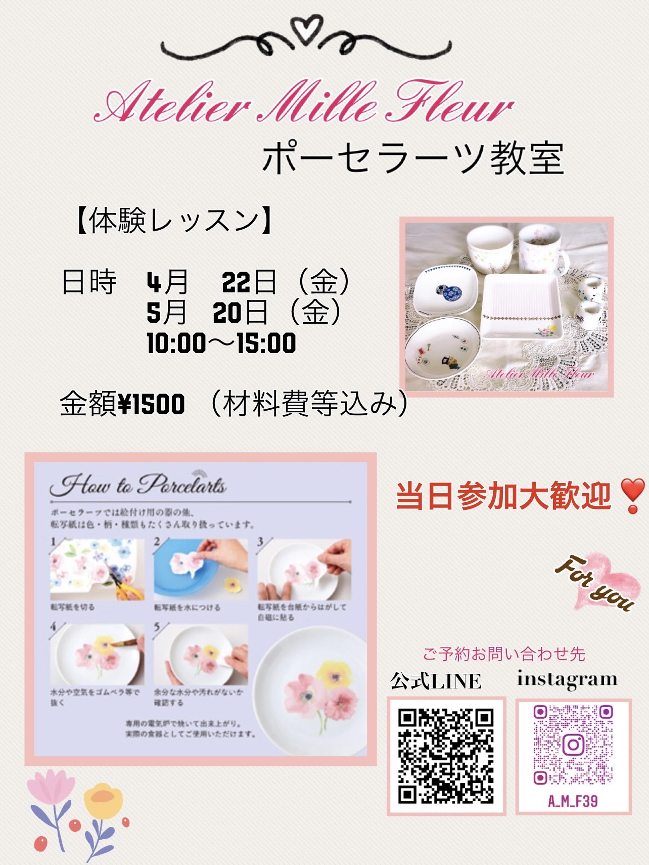 2022年4月22日(金)5月20日(金)ポーセラーツ教室(Atelier Mille Fleur)