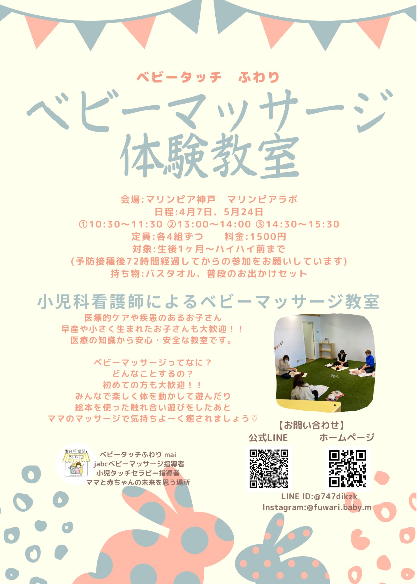 2022年4月7日(木)5月24日(火)ベビーマッサージ体験教室