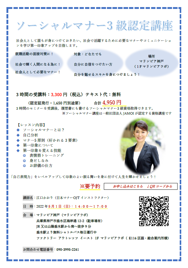 2022年5月1日(日)ソーシャルマナー3級認定講座